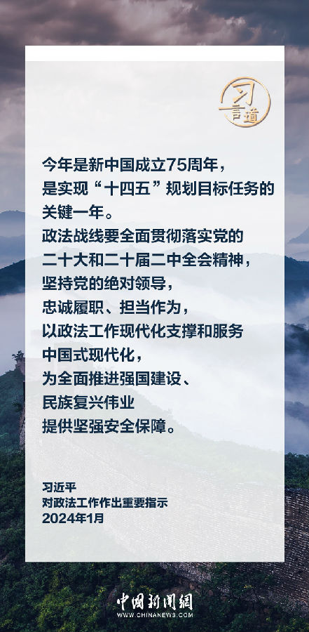 中共中央總書記、國家主席、中央軍委主席習近平近日對政法工作作出重要指示。他指出——