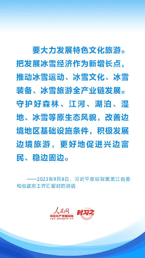 冰天雪地也是金山銀山。長期以來,習(xí)近平總書記高度重視寒地冰雪經(jīng)濟發(fā)展,多次考察調(diào)研冰雪運動和產(chǎn)業(yè)發(fā)展情況,就“推進寒地冰雪經(jīng)濟加快發(fā)展”等發(fā)表重要講話、作出重要指示,為我國冰雪經(jīng)濟發(fā)展注入強大動力。