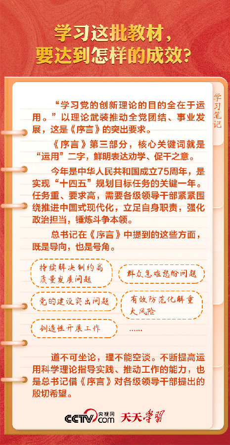天天學習 近期,習近平總書記為即將出版發行的第六批全國干部學習培訓教材作序。這是黨的十八大以來,總書記第三次為全國干部學習培訓教材作序。
