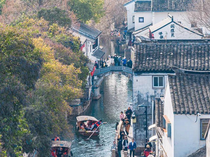 △眾多市民游客在平江歷史文化街區游玩。