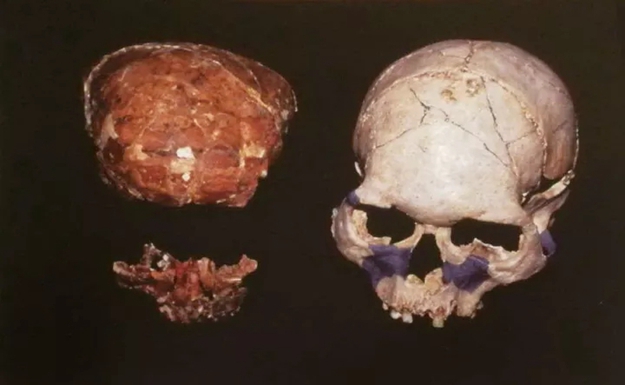 ▲“深頭骨”(左側)與現代人頭骨(右側)的比較