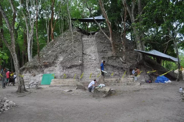 伯利茲素那多尼基遺址位于危地馬拉邊界的伯利茲河上游河谷涵蓋了伯利茲這個國家最大的考古遺址群。2015年-2016年先后發掘的一座位于主要衛城的小神殿以及兩座寺廟金字塔和調查發掘,調查發現3號和4號象形文字碑版、A9-2墓葬,建筑中央樓梯的第一階下方發現的兩個藏物箱或陪葬箱,以及在建筑底部下方所發現的未雕刻石碑。