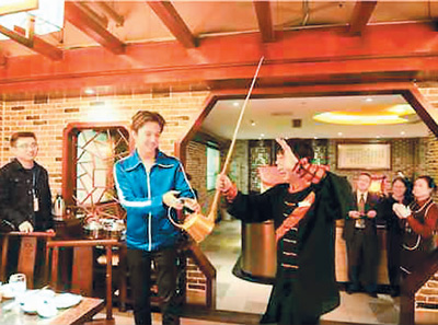 變臉是川劇表演藝術(shù)的特殊技巧之一,迪瑪希體驗成都的一個重要活動就是看變臉。在觀看的過程中,迪瑪希也發(fā)現(xiàn)了中國和哈薩克斯坦之間緊密的文化聯(lián)系。“我感覺四川的變臉特別神奇,同時也吃驚地發(fā)現(xiàn)川劇服裝的裝飾設(shè)計與哈薩克斯坦的服飾有許多相似之處。”
