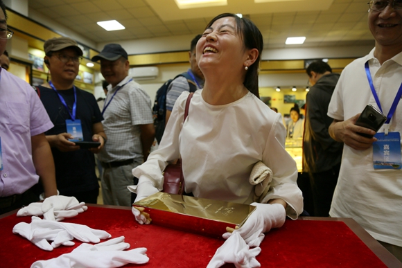 總編們參觀招金集團(tuán),并體驗(yàn)金錠