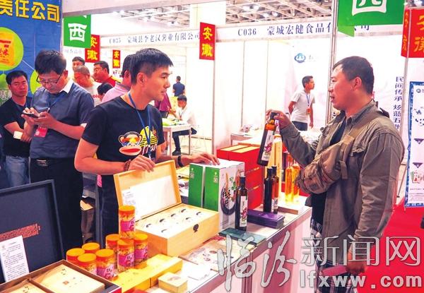 臨汾新聞網訊 6月6日,在山東煙臺舉辦的第十一屆東亞國際食品交易博覽會上,顧客在了解購買我市古縣“天香丹露”牡丹籽油產品。牡丹籽油不飽和脂肪酸含量高達92%以上、α-亞麻酸含量高達43.18%,多項指標超過“液體黃金”橄欖油。在此次博覽會上,華興農業“天香丹露”牡丹籽油以優良品質受到來自國內外各界客商的關注。(景雄)