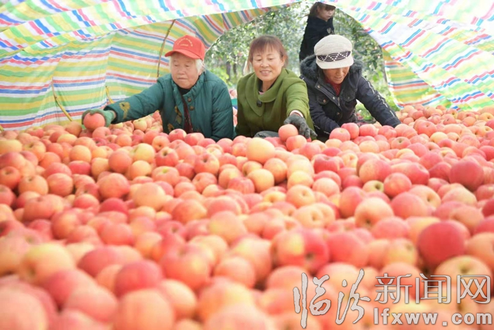 臨汾新聞網訊 近日,在古縣南垣鄉東池村古峰蘋果栽培專業合作社果園里一派繁忙的景象,社員們或提著果籃采摘蘋果,或蹲在地上給豐收的蘋果套袋、裝箱。