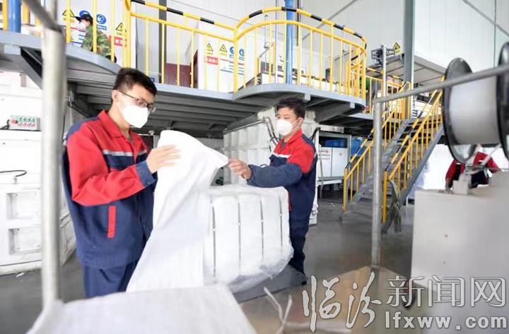 臨汾新聞網訊 近年來,古縣積極貫徹新發展理念,并依托龍頭企業,把新材料產業打造成為轉型發展的主要產業。古縣新源盛能源材料有限公司位于古縣經濟技術開發區,其特種微纖維生產線年產量9000噸,年產值可達到9000萬元。圖為工作人員在古縣新源盛能源材料有限公司特種微纖維制品生產車間內忙碌。