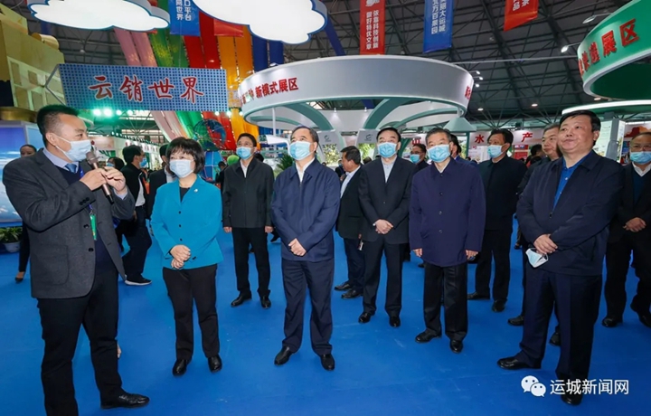 開幕式前,與會領導和嘉賓參觀了果博會展館。本屆博覽會由運城市人民政府與中國果品流通協會聯合主辦,以“運城蘋果云銷世界”為主題,共設縣(市、區)、新品種新技術新模式、精準扶貧成果、山西藥茶產品、郵政快遞服務及新裝備新機械等18個展區,參展企業300余家,各類產品2000余種,線上線下同步展示展銷世界果業先進技術、各地特色名優果品、山西藥茶和果業產業扶貧成就。