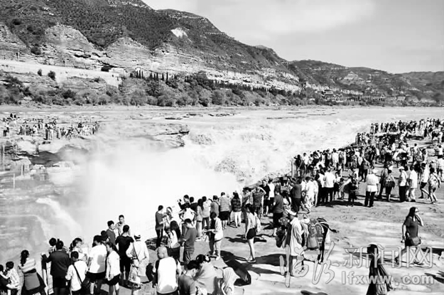 臨汾新聞網訊 8月8日,眾多游客在吉縣黃河壺口瀑布景區游覽。7月下旬以來,吉縣黃河壺口瀑布景區迎來暑期旅游高峰,前來觀瀑的游客絡繹不絕,瀑布飛濺的浪花和水霧為游客帶來絲絲涼爽。