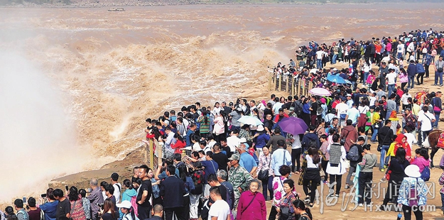 臨汾新聞網訊 10月2日,吉縣黃河壺口瀑布迎來客流高峰。為了確保游客安全有序參觀游覽,該景區提前啟動了旅游高峰接待預案,增加交通運營車輛和安全巡查力量,設立了游客便民服務點,確保景區管理安全有序。