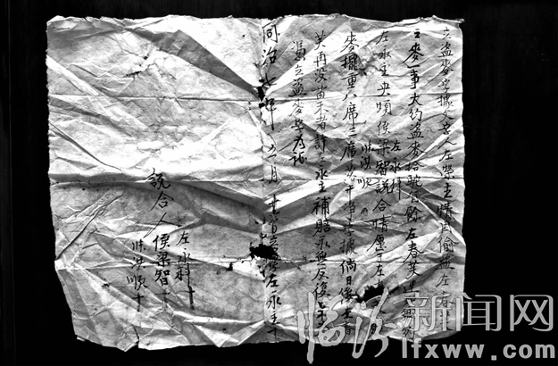 臨汾新聞網(wǎng)訊 近日,我市著名收藏人來祥生先生淘得一張鄉(xiāng)村“文書”,薄薄一張紙,寥寥數(shù)句話,反映的是清朝同治年間發(fā)生在鄉(xiāng)間鄰里的一段往事。
