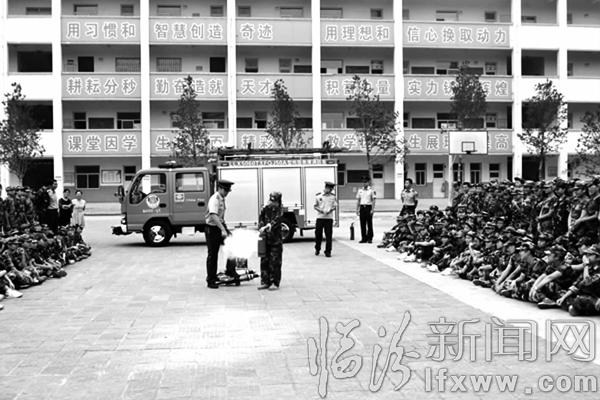 臨汾新聞網訊 近日,侯馬市公安局消防大隊組織消防人員走進502學校開展消防知識“進軍訓”活動,切實提高廣大學生的消防安全素質和逃生自救能力,活動中,大隊宣傳人員通過散發傳單、現場講解等方式,以校園典型火災事故案例為切入點,為學生講解了消防安全常識以及正確報警、火場逃生、撲滅初起火災等消防技能要點,并手把手向學生講解干粉滅火器的使用方法及注意事項。 郭清海 攝