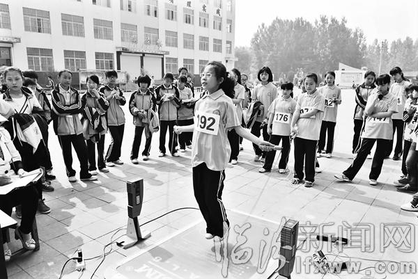 臨汾新聞網訊 近年來,霍州市大張鎮第一中學把開展學生體育運動作為推進素質教育的重要載體之一,不斷強化中學體育課教學和學生課外鍛煉,讓越來越多的學生走出教室、走向操場,進一步活躍了校園文化生活,增強了學生體質。圖為學生們在校首屆田徑運動會上比賽跳繩的情景。