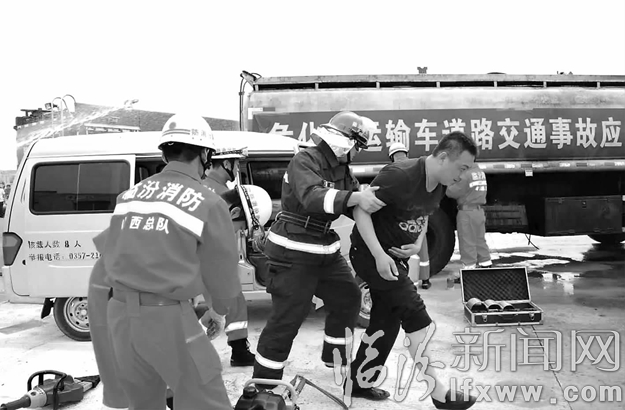 臨汾新聞網訊 6月23日上午,霍州市公安局交警大隊聯合交通運輸局、安監局、環保局、消防大隊、120指揮中心等單位在客運站組織開展了危化品運輸車輛交通事故應急救援演練。