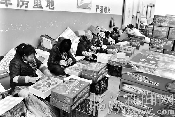 臨汾新聞網訊 近日,吉縣聚寶壺果業(yè)公司工作人員將氣調庫里的蘋果貼標、裝箱,銷往南方。該公司有蘋果氣調冷藏庫16個,年貯存蘋果8000噸,服務農戶1000余戶,銷售旺季日均用工達100余人,帶動了一方農民增收。