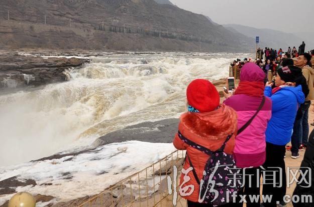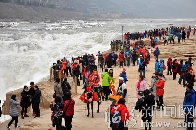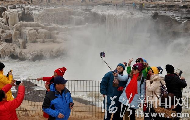 臨汾新聞網(wǎng)訊 2017年1月15日,眾多游客在吉縣黃河壺口瀑布景區(qū)觀賞冰瀑奇觀。