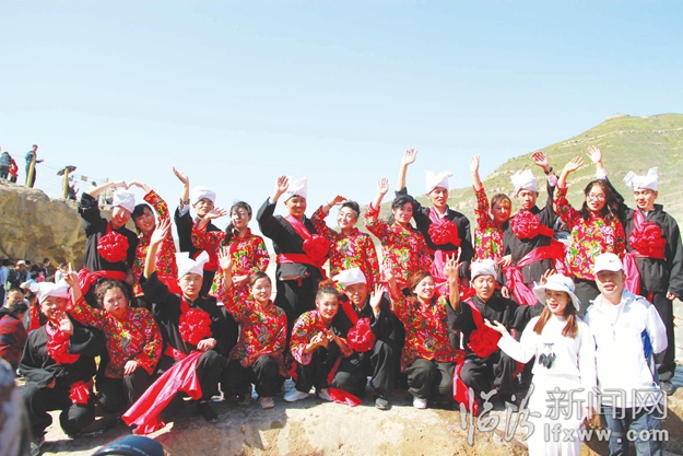 臨汾新聞網訊 浪漫五一,情定壺口。4月28日,吉縣黃河壺口瀑布風景區熱鬧非凡、人潮涌動,10對新人情定黃河壺口瀑布。新郎上身著黑色大襟衫襖,新娘身穿繡有牡丹的紅色上衣。新人們在歡快的嗩吶聲中,騎著毛驢在景區舉行集體婚禮,他們還在壺口瀑布的護欄上鎖上了屬于自己的同心鎖。集體婚禮吸引了眾多游客圍觀,他們紛紛與新人們合影留念,并送上祝福。