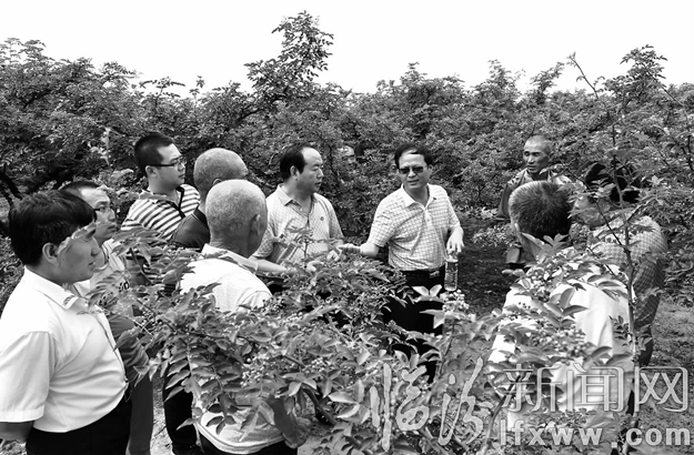 臨汾新聞網訊 6月14日,在吉縣柏山寺鄉圪塔村,來自陜西省韓城市花椒種植專家為該村的20余名花椒種植戶講解花椒種植和管理技術。通過專家的講解和現場提問的方式,種植戶們解決了花椒種植過程中的難題,他們紛紛表示,這次活動組織得好,回去要把學到的種植技術傳授給其他種植戶,把圪塔村的花椒產業做大做強。 (張保華)