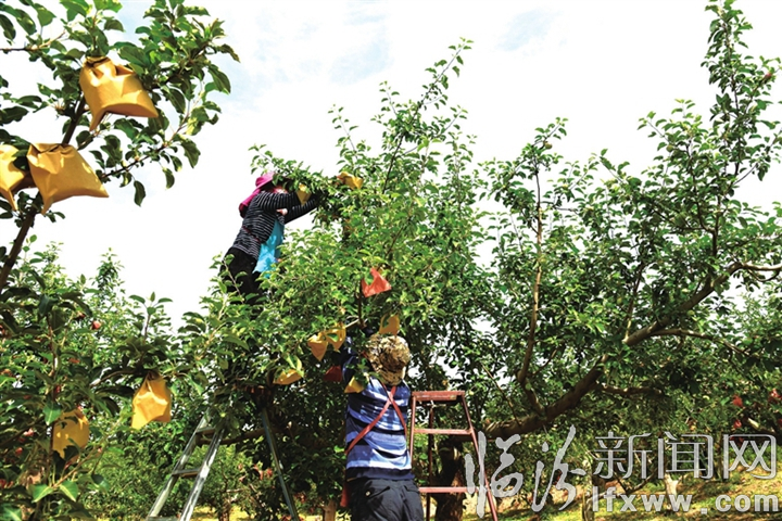臨汾新聞網訊 近日,吉縣文城鄉大圪塔村的果農正在給蘋果套袋。眼下正是蘋果套袋的有利時節,在吉縣廣大農村的果園里,到處可見果農們忙碌的身影。據了解,蘋果套袋不僅能預防病蟲害,還可保護果面、促進著色,提高果品的商品價值。