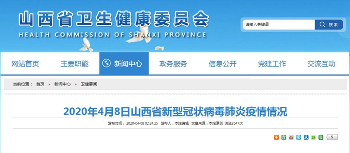 2020年4月7日0-24時,山西省本地無新增新冠肺炎確診病例、疑似病例和無癥狀感染者。累計報告確診病例133例,治愈出院133例。