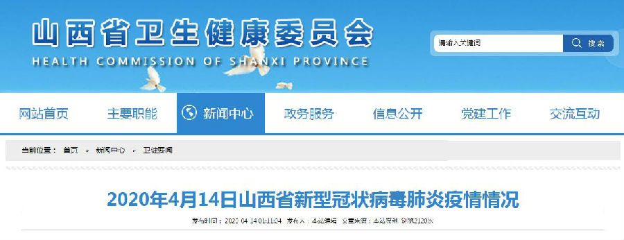 2020年4月13日0-24時,山西省本地無新增新冠肺炎確診病例、疑似病例和無癥狀感染者。累計報告確診病例133例,治愈出院133例。