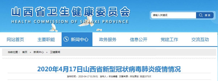 2020年4月16日0-24時,山西省本地無新增新冠肺炎確診病例、疑似病例和無癥狀感染者。累計報告確診病例133例,治愈出院133例。