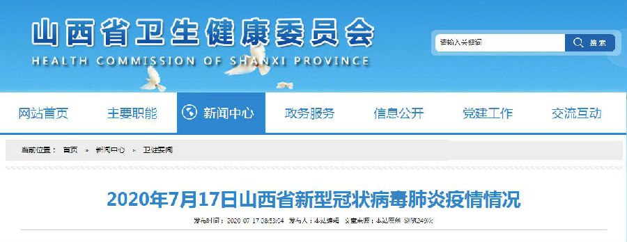2020年7月16日0-24時,山西省本地無新增新冠肺炎確診病例。累計報告確診病例134例,治愈出院134例。現有疑似病例0例。