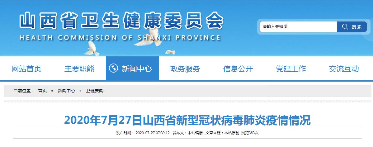 2020年7月26日0-24時,山西省本地無新增新冠肺炎確診病例。累計報告確診病例134例,治愈出院134例。現有疑似病例0例。