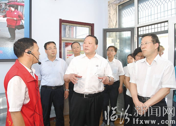7月15日下午,省委常委、統戰部長徐廣國深入侯馬市、曲沃縣,就民族團結進步創建工作、民營企業經營發展情況進行調研。市委書記董一兵、市委常委郝忠祥分別參加調研活動。圖為徐廣國在侯馬市路西街道辦事處東街社區調研。 記者 魏華 攝