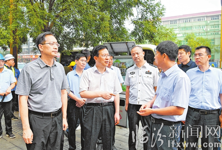 9月10日上午,市委書記董一兵調研市區靚城提質“三大行動”,他強調,要堅持以人民為中心的發展思想,深入貫徹全省城市工作會議精神,以更大力度推進“三拆三下三進”,堅持規劃引領,做好群眾工作,全力加快實施,持續改善城市風貌、提升城市品質,不斷提高人民群眾的生活質量和幸福指數。市委常委、常務副市長常青,市委辦公室、市政府辦公室、市住建局、市規劃和自然資源局、市城市管理局、市公安局交警支隊負責人參加調研。圖為董一兵在向陽西路調研。 記者 魏華 攝