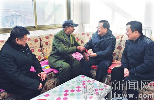 圖為劉予強在洪洞縣甘亭鎮北羊村慰問老復員軍人杜彥聰。記者 閆銳鵬 攝