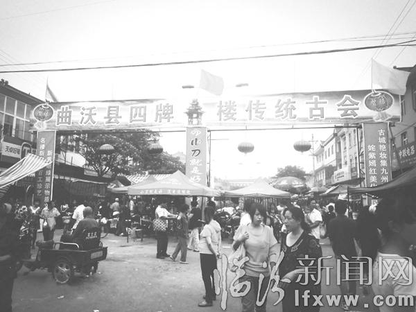 四牌樓傳統古會,始于清朝末年,始稱農歷七月二十二財神會,每年舉行一次,一般為十天。四牌樓又名望母樓,位于曲沃古城東南隅、貢院街中段東關村,明萬歷四十三年邑人李濟沆因幼喪父母,繼母育其成人,后取舉人,繼母早逝,遂建樓望母。