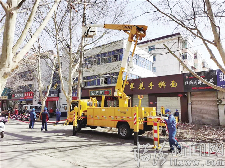 臨汾新聞網訊 春暖花開,萬物萌生。為了保障市區供電設備和線路的安全,市供電公司對市區的供電設備周邊環境進行了全面檢查,發現有影響供電安全的樹木,馬上對其進行清理。圖為該公司配電運檢室修剪市區科委巷線路周圍樹枝。