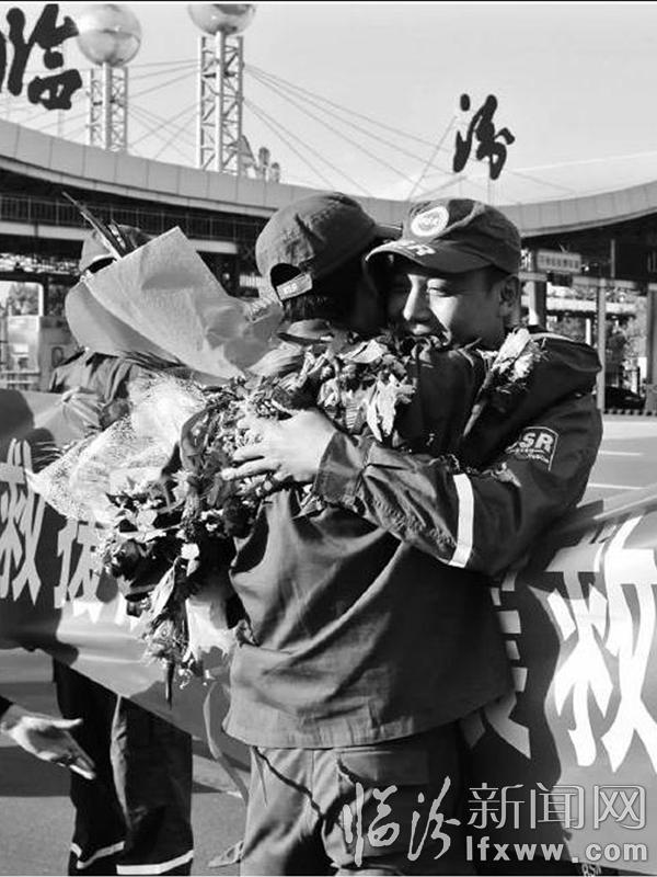 臨汾新聞網訊 5月11日,臨汾藍天救援隊的隊員們赴尼泊爾參加國際救援載譽歸來。此次救援行動共十四天,是救援隊第二次參加國際性的救援。救援行動涉及指揮、搜救、信息排查、醫療、防災等多個層面,得到國內外多家媒體的關注。圖為臨汾藍天救援隊隊員在臨汾高速路口迎接參加救援歸來的隊員。