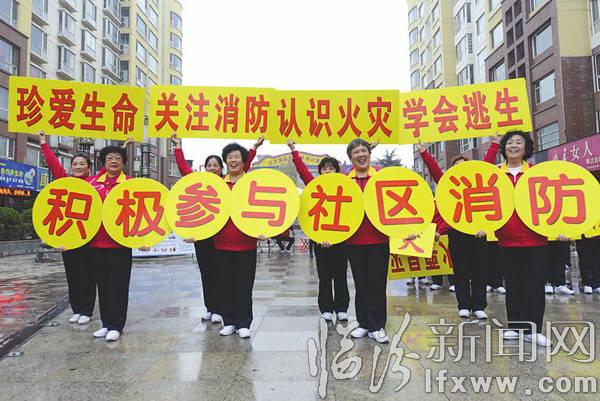 在科海小區活動現場,社區消防健身操將報火警、逃生、防火等注意事項融入其中,受到社會各界的一致好評。居民現場撲救著火的油盆、油鍋、煤氣罐,讓參會人員學會和掌握了家庭中常見火災的撲救方法。