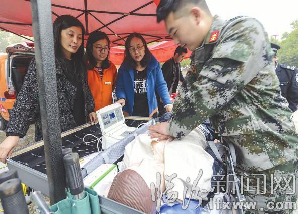 當天下午,堯都區“119消防宣傳日”活動在裕祥花苑小區廣場舉行?;顒蝇F場,群眾零距離接觸消防設備,消防官兵現場展示搶險戰斗服、切割機、紅外線熱成像儀等消防設備,與群眾展開互動。與此同時,市民們還通過現場觀摩學到了急救常識。