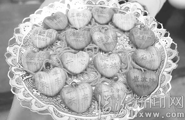 當天最隆重的一個環(huán)節(jié)是為32個孩子掛愛心鎖,這是臨汾市映連紅家具有限公司為孩子們精心制作的紅木愛心鎖,上面刻有每個孩子的姓名和心語心愿。簡單快樂”幸福美滿”當一個合格的醫(yī)生”……孩子們的心聲各不相同,但都充滿了對生活的美好期望。