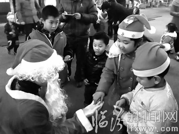 臨汾新聞網訊 圣誕節當日,不少商家、幼兒園的工作人員裝扮成圣誕老人,為市民和孩子送上節日的祝福。