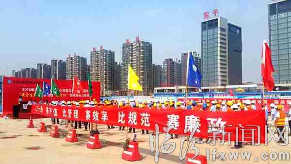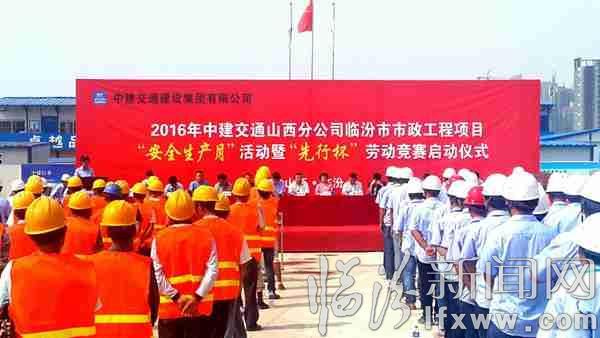 臨汾新聞網訊 保質量,趕工期,搶速度,促發展,安全生產是關鍵!……臨汾市重點建設工程見聞。2016年6月6日,中建交通集團山西分公司臨汾市政工程項目“安全生產月”活動暨“先行杯”勞動競賽啟動儀式,下午三點在迎賓大道與濱河東路立交橋工程項目主會場隆重舉行。參加本次活動的有分公司和市總工會領導及來自中建交通各項目部一線施工人員代表共100余人。