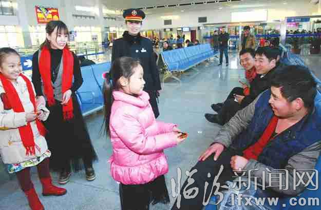 臨汾新聞網訊 “叔叔,祝您旅行愉快!這個平安手環送給您。”1月20日,臨汾西站迎來了一群特殊的小學生,他們在候車廳內為旅客跳了“快閃”,并送給候車的旅客每人一個代表平安的手環,祝旅客旅途愉快。