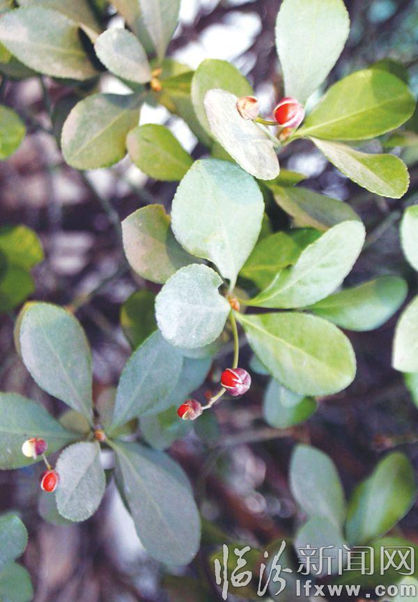 2月4日下午,記者聞訊來到李先生家。在這個不大的小院里,一棵高3米、樹冠達6平方米的冬青樹,在十幾株竹子圍繞下顯得分外挺拔,墨綠色的樹葉中夾雜著斑斑點點的紅色花朵。經觀察發現,這些花朵原來就是冬青樹的“果實”,花朵豆粒般大小,有的含苞待放,有的已經結出紅色的果實。
