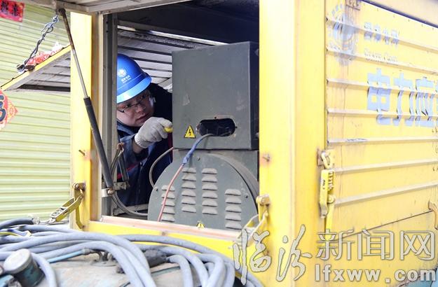 臨汾新聞網訊 2月9日,山西臨汾古縣供電公司員工在縣文化活動中心銜接電力應急電源車,確保元宵節演出供電安全可靠。