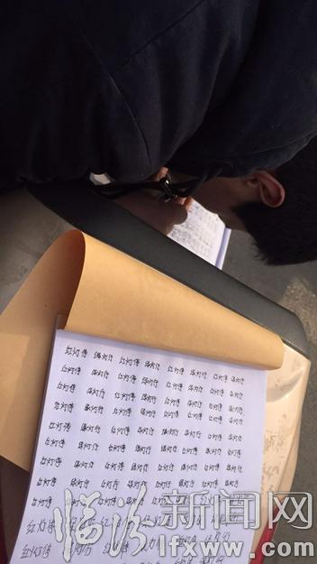 臨汾新聞網訊 2月15日上午10時許,平陽南街與五一路十字路口交通順暢、秩序井然。在十字路口的東北角聚集了七、八輛電動車和摩托車,有幾個人趴在車座上寫著什么,一位交警和另外幾個人交談著,他們在干什么?記者走上前去,一探究竟。