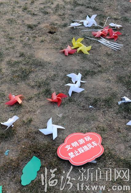 然而,讓游樂園沒有想到的是,一些游客居然把這些風車當成了旅游紀念品。僅僅一天時間,數萬只風車幾乎損毀殆盡,2月18日下午,記者在位于臨汾西雅圖攝影基地的“風車游樂園”里看到,這里是這個周末人氣最高的地方,草坪中隨處可見散架的風車,熙熙攘攘游園的人們手里,風車成了一道風景線,插在地面上的風車造型早已不成型,僅剩下零散和被踩踏和損毀的風車。