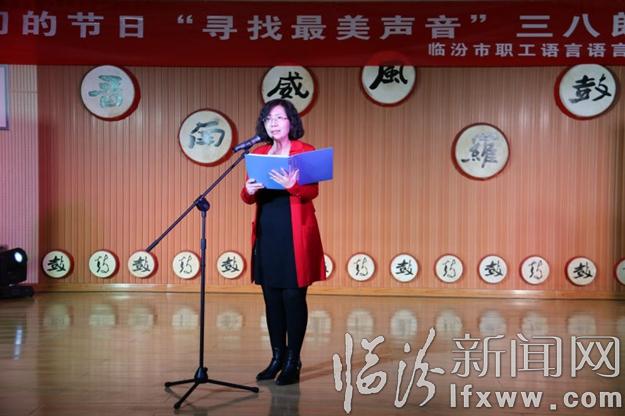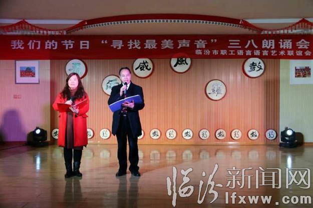 臨汾新聞網訊(記者 衛博)3月8日晚,臨汾市職工語言藝術聯誼會在群藝館舉辦了<<我們的節日——尋找最美聲音“三八”朗誦會>>,在活動現場,朗誦愛好者們既有經典小說的演繹,又有國學詩詞的豪放,既有原創現代詩文的曼妙,也有名曲老歌的雄渾。時而鏗鏘嘹亮,時而柔和舒緩,時而跌宕起伏,時而纏綿悱惻,熱烈的氣氛一浪高過一浪。