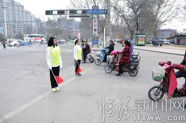 圖為大學生志愿者在交通崗協助民警指揮交通、勸導行人走人行道、斑馬線,嚴格遵守“紅燈停、綠燈行”等文明交通行為。 記者白潔攝