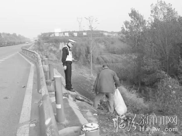 在大隊(duì)民警的日常巡查中,經(jīng)常會(huì)發(fā)現(xiàn)有拾荒者走上高速拾撿來往車輛拋下的水瓶、廢紙等,這種行為對他們自身的人身安全和高速公路行車都有著極大的安全隱患,而且他們往往都帶有反復(fù)性的特點(diǎn),常常和交警“打游擊”,從這邊勸下去了,又從那邊鉆上來。