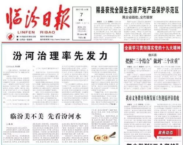 本報11月7日頭版頭條刊發的《汾河治理率先發力》被新華網長篇轉發