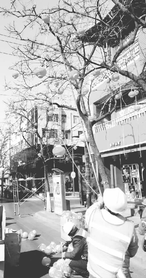 臨汾新聞網(wǎng)訊 1月23日,記者在市區(qū)鼓樓東大街看到,幾名工作人員正在行道樹上懸掛紅燈籠。一時間,臨汾街頭被喜慶的紅燈籠點綴一新。