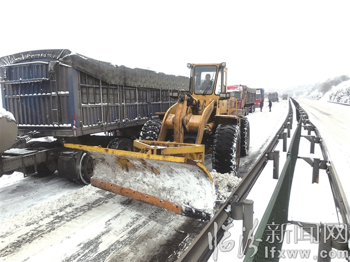 圖① 1月7日,臨汾北高速公路分公司的除雪車在霍永高速進行除雪作業。近日,該公司啟動應急預案,共出動30余輛車上路作業,保障道路暢通。 邱啟明
